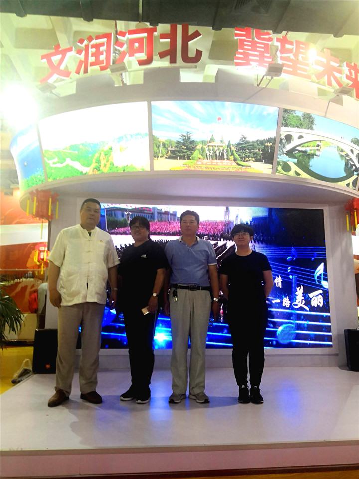 圖為鄭總和興隆縣旅游和廣電局書記閆海濤(右二)局長張曉莎(右一)和興隆縣文聯主席王久霞(左二)在文博會上合影留念