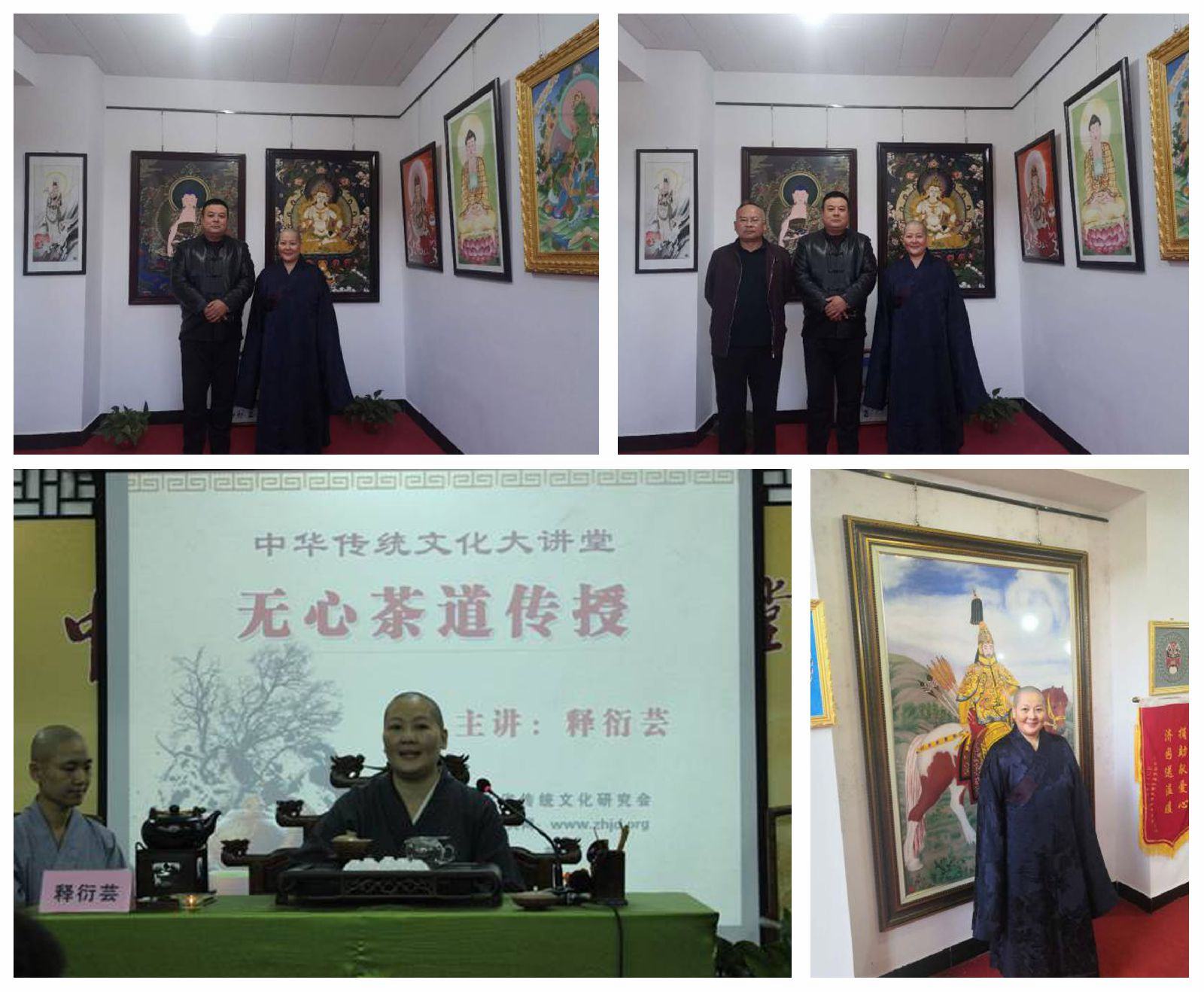 10月13日。興隆縣鄭氏砂藝文化有限公司董事長鄭鐵軍在公司會見了原縣民族宗教事務(wù)局局長蔣學(xué)金率領(lǐng)的興隆縣隆蕓寺住持、禪茶研修班導(dǎo)師、國際茶藝師釋衍蕓法師等一行。并引導(dǎo)衍蕓法師,觀賞了公司美輪美奐的砂藝作品。釋衍蕓法師為金剛薩埵等十幾幅佛教作品進行了灑凈。通過灑凈更加增強了砂藝作品的靈感性和親和力。釋衍蕓法師,90年代遍訪諸山茗茶,研習(xí)各派茶藝,精通各類茶泡制與品鑒,后將禪學(xué)融入茶事,開創(chuàng)“無心禪茶”,借茶修心,益人無數(shù)。釋衍蕓法師是禪茶研修班導(dǎo)師,國際茶藝師,曾多次受邀代表中國到馬來西亞、法國等歐亞國家參加國際茶藝、茶道表演、研討與交流;現(xiàn)受聘于湖北陸羽(茶圣)紀念館名譽館長。在佛教界和茶道界享有很高名望。