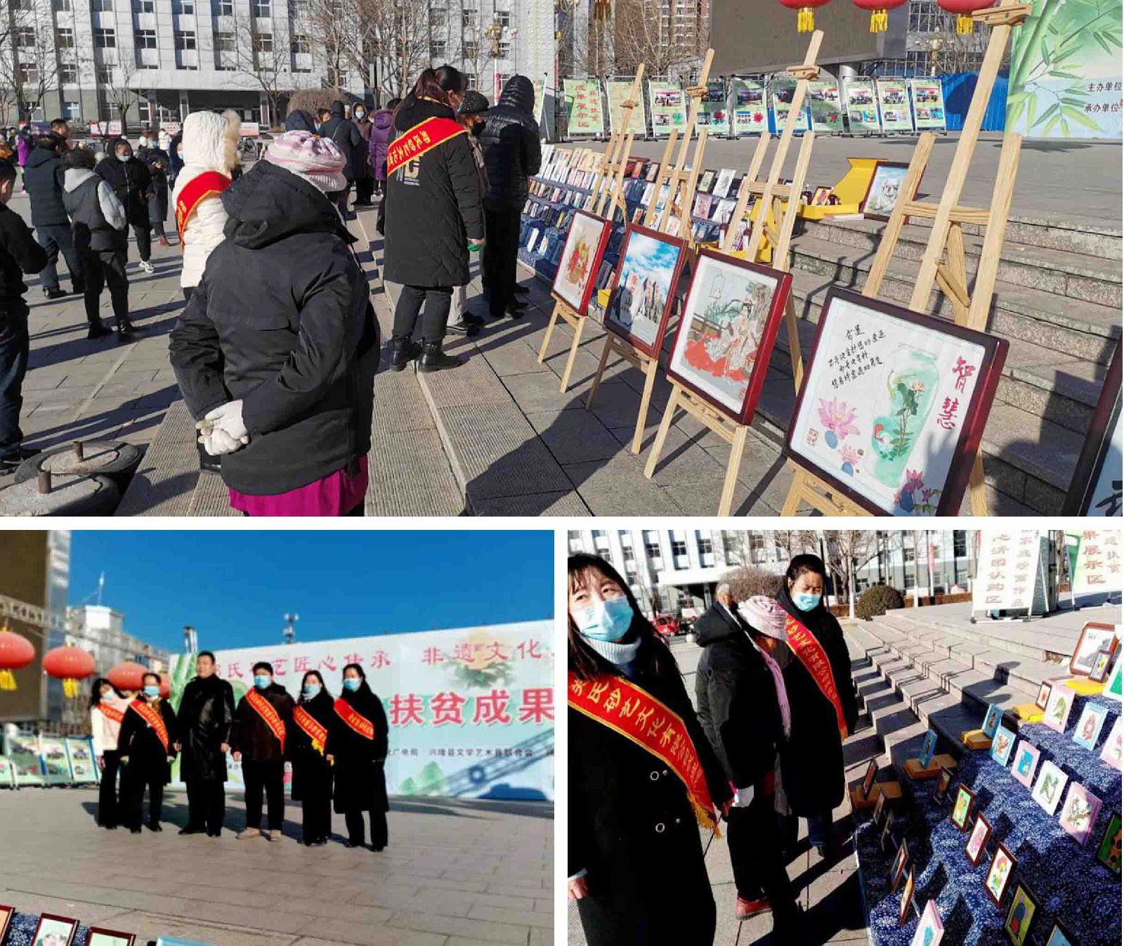 2020年11月27日。由中共興隆縣委宣傳部、興隆縣旅游和文化廣電局、興隆縣文學藝術界聯合會、興隆縣扶貧開發辦公室主辦的、由興隆縣鄭氏砂藝文化有限公司承辦的《非遺文化扶貧成果展》在興隆縣中心廣場拉開帷幕。展會由興隆縣文學藝術界聯合會主席王久俠主持,鄭氏砂藝文化 有限公司董事長鄭鐵軍致開幕詞。文聯主席王久俠作重要講話。她說:“鄭氏砂藝是祖傳技藝,幾年來鄭氏砂藝積極開展非遺文化扶貧,培訓全縣400余名貧困婦女,制作出了具有飽含鄉土氣息,美輪美奐的砂藝作品。讓他們用巧手脫貧致富,為脫貧攻堅作出顯著貢獻。”隨后縣委宣傳部常務副部長隋云鵬、縣旅游和文化廣電局黨委書記閆海濤、文聯主席王久俠由砂藝公司董事長鄭鐵軍、公司工會主席趙文紅等引導下,觀摩了“扶貧培訓成果展區”、“消費扶貧展區”、“貧困戶作品展區”及“愛心認購展區”。四區展介及作品。對鄭氏砂藝非遺文化扶貧成果給予充分肯定,并興致勃勃地欣賞了鄭氏砂藝美輪美奐的貧困戶作品。