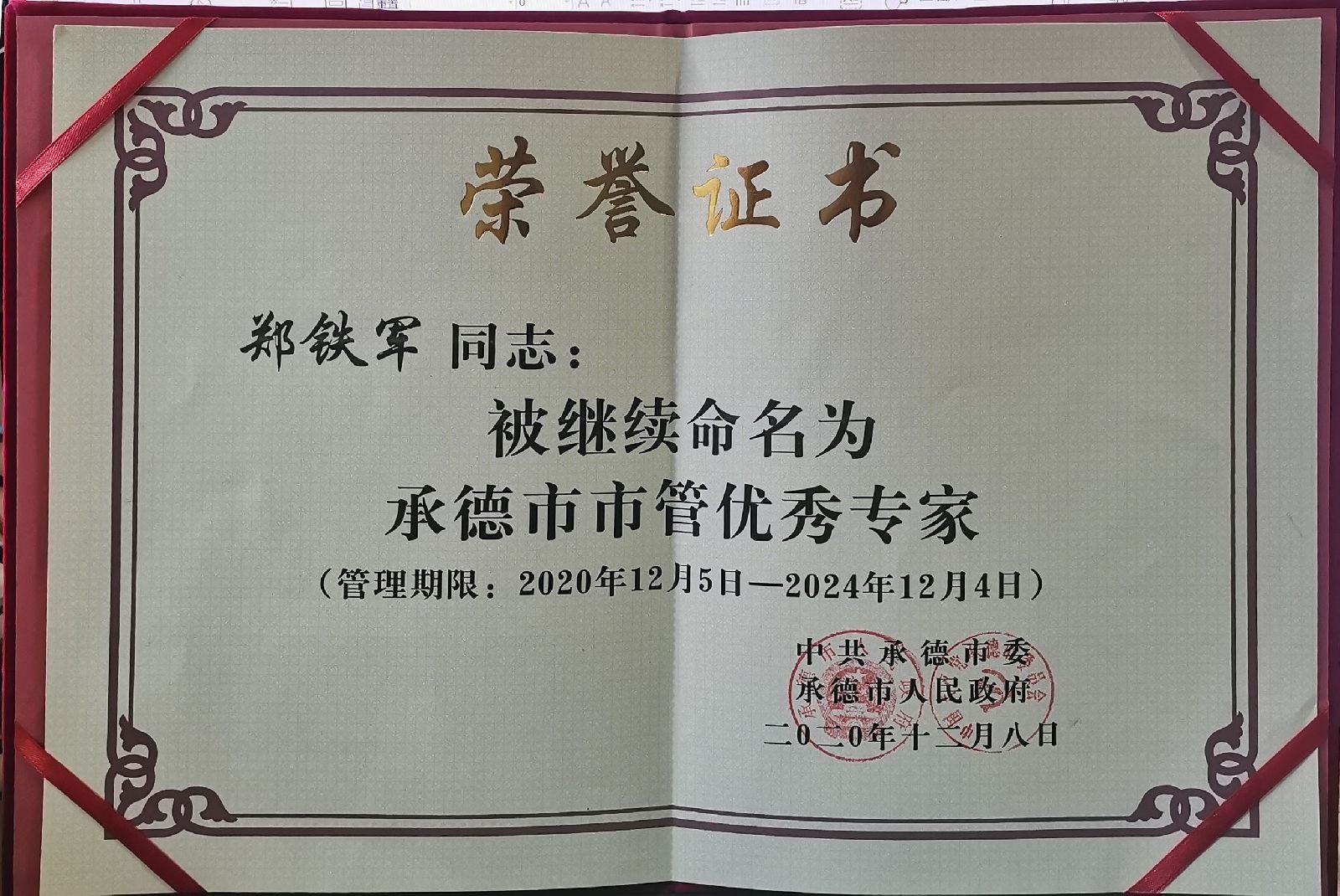 鄭鐵軍董事長再次被中共承德市委、承德市人民政府評為“承德市市管優秀專家”