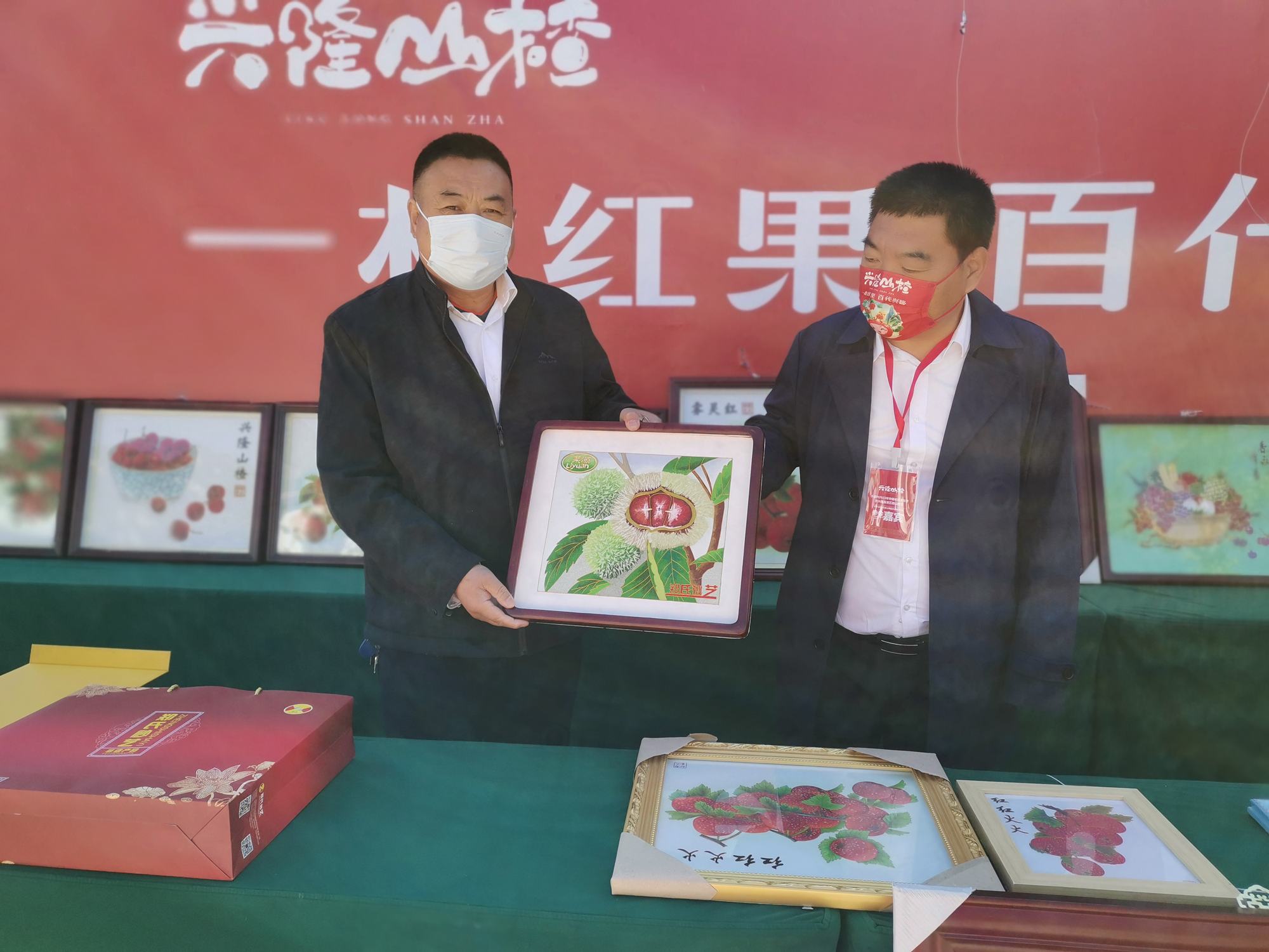 在此次山楂節(jié)上,鄭氏砂藝展出了《興隆山楂節(jié)》、《霧靈紅》、《山里紅》、《興隆山楂》等數(shù)十幅非遺砂畫作品,用獨(dú)特的藝術(shù)方式展現(xiàn)了我縣山楂豐收的盛況,為興隆縣第五屆山楂節(jié)獻(xiàn)上了一份另類的藝術(shù)“厚禮”。市委副書記郭旭濤等一行領(lǐng)導(dǎo)相繼駐足觀看砂畫作品,并同鄭氏砂藝董事長鄭鐵軍進(jìn)行親切交談,郭旭濤書記對鄭氏砂藝非遺文化傳承和保護(hù)工作給予了充分肯定和贊揚(yáng)。鄭氏砂藝的展出既體現(xiàn)了承德對提升“非遺”文化軟實(shí)力的重視,又反映出承德地區(qū)民族文化自信的提升,砂藝人也會用藝術(shù)講好承德故事,傳播好承德聲音。