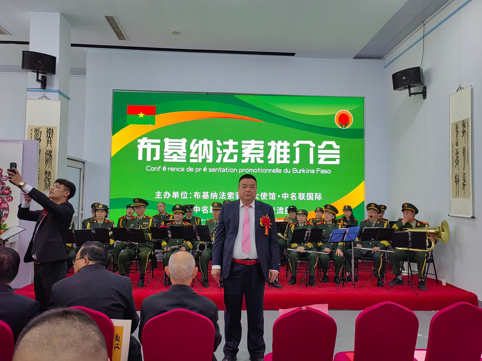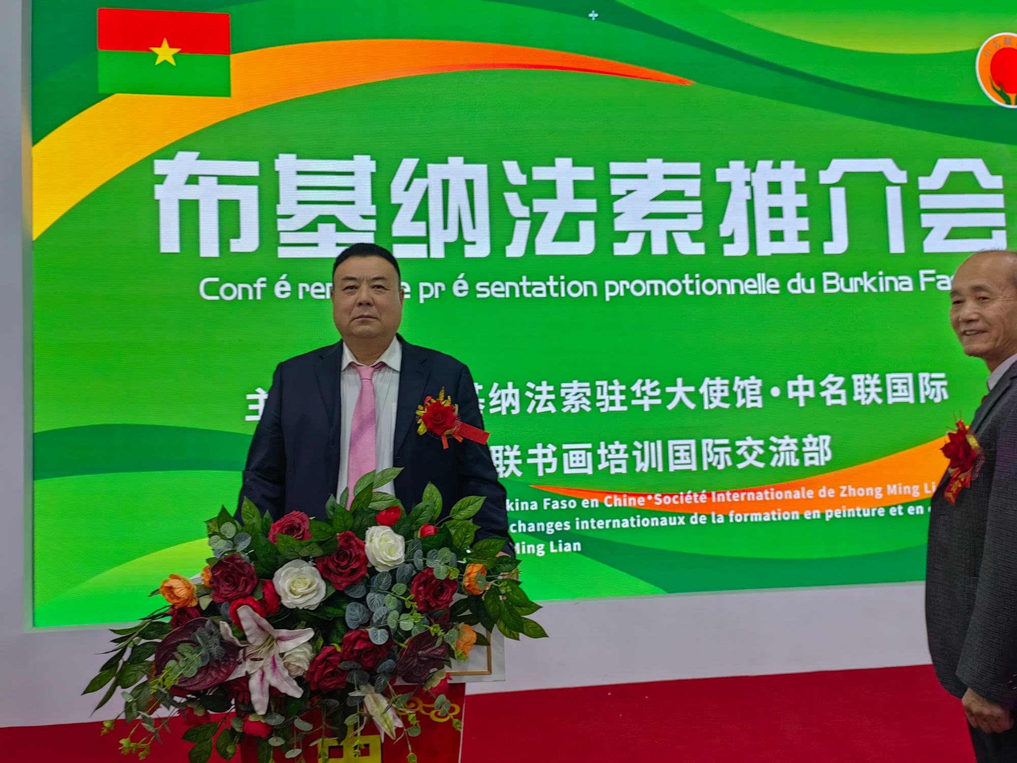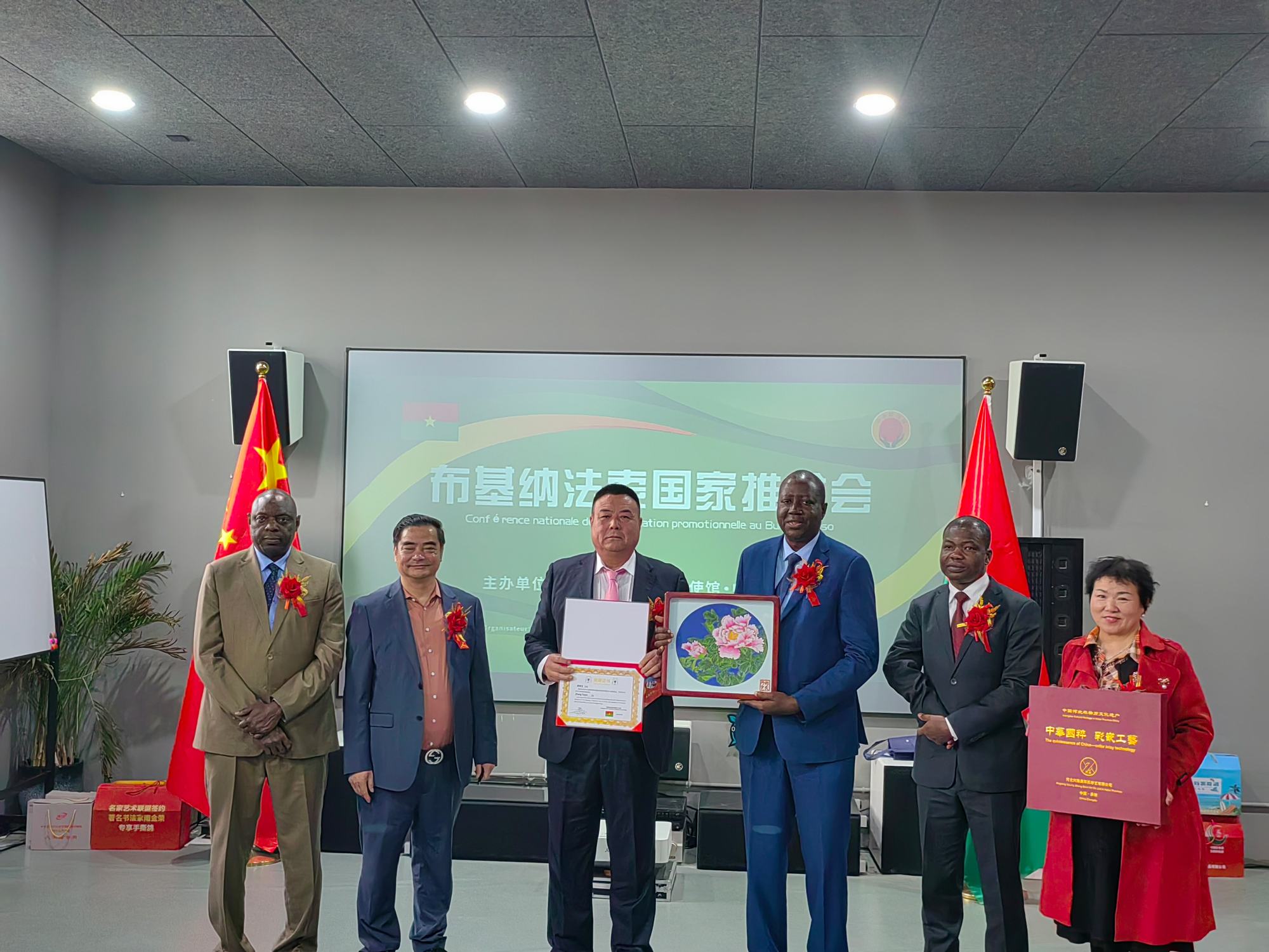 2023年4月12日,興隆縣鄭氏砂藝文化有限公司執(zhí)行董事長鄭鐵軍參加由布基納法索駐華大使館.中名聯(lián)書畫培訓(xùn)國際交流部主辦的“布基納法索國家推介會(huì)”和“中名聯(lián)191期經(jīng)濟(jì)與藝術(shù)交流會(huì)”。會(huì)上,布基納法索共和國駐華大使團(tuán)、商務(wù)代表團(tuán)一行對(duì)鄭鐵軍的砂畫作品高度贊賞,并現(xiàn)場(chǎng)簽訂了訂購協(xié)議,頒發(fā)了收藏證書,授予鄭鐵軍“中非文化交流使者”榮譽(yù)稱號(hào)。