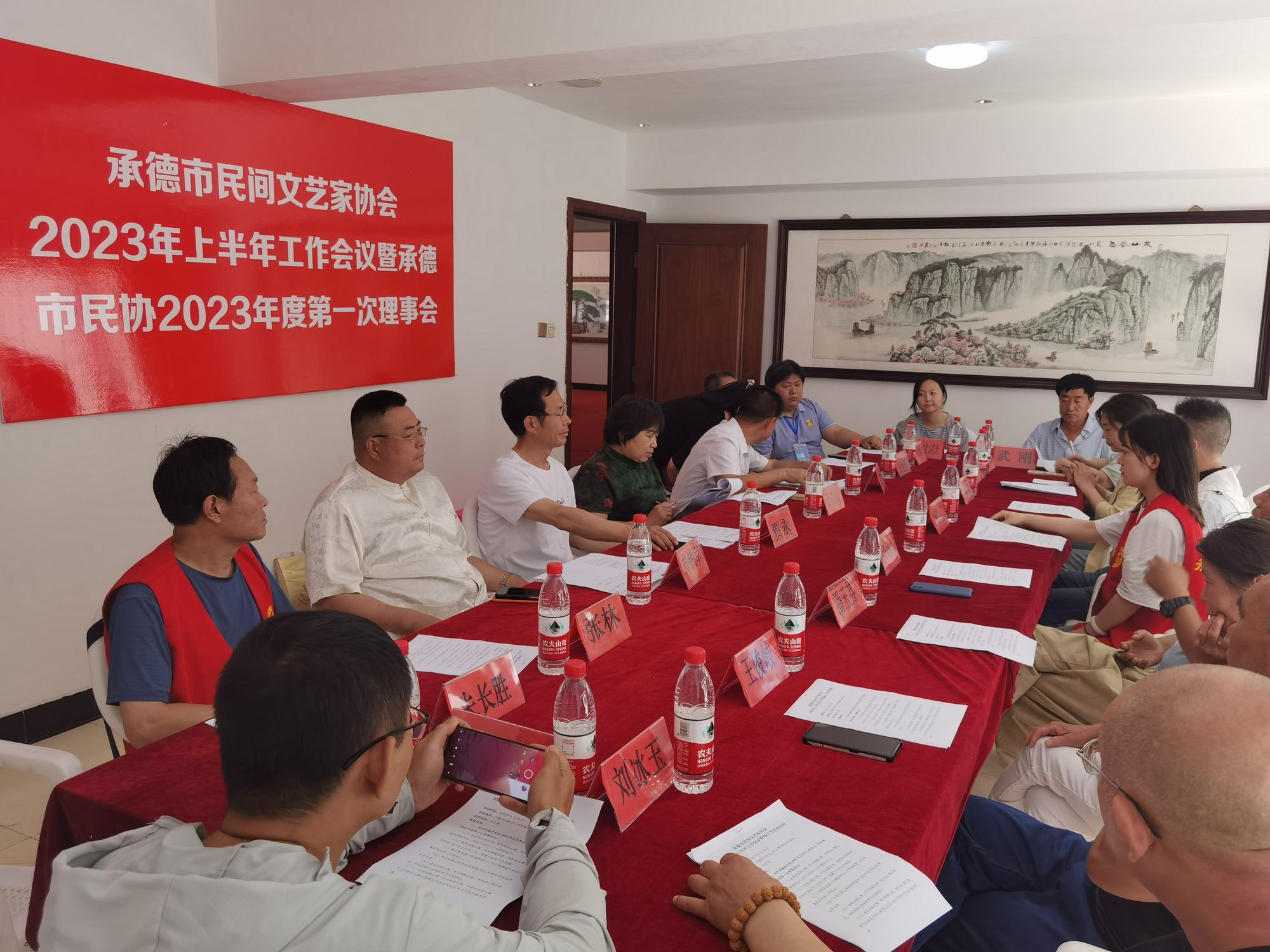 2023年6月20日,承德市民間文藝家協會2023年上半年工作會議暨承德市民協2023年度第一次理事會在興隆縣鄭氏砂藝文化有限公司勝利召開。出席此次會議的有河北省民協副主席、承德市文聯副主席、承德市民協主席石俊鳳,興隆縣文聯主席賈永,承德市民協秘書長馬立國,承德市民協副秘書長龐麗君,承德市民協副主席、興隆縣民協主席鄭鐵軍,以及承德各區縣民協代表參加會議,會議由市民協秘書長馬立國主持。