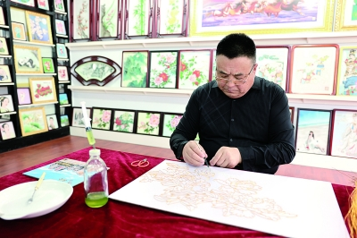 “鄭氏砂畫既有文化價值,也有商業價值,傳承下去沒有問題。只要有人喜歡,我都可以免費培訓。”環視著精巧艷麗的砂畫,鄭鐵軍信心滿滿,“現在免費開放的非遺文化體驗館,假期時來的學生非常多。我的目標是做成全國最大的砂畫生產基地。”
