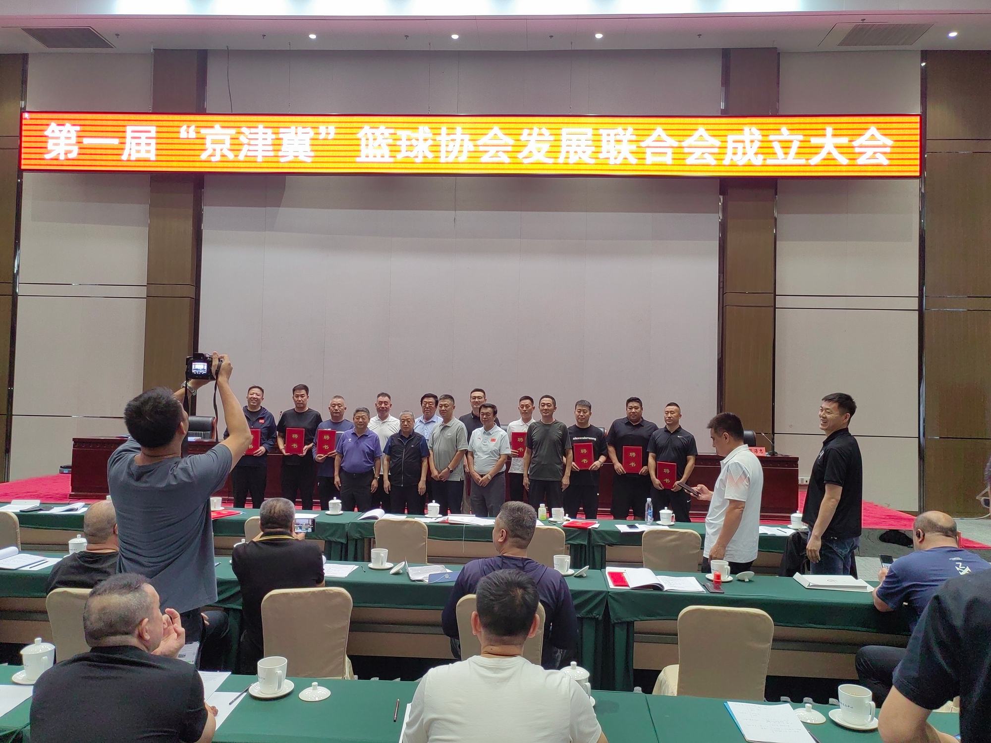 2024年9月12日上午,第一屆“京津冀”籃球協(xié)會發(fā)展聯(lián)合會成立大會于在北京市懷柔區(qū)雁棲湖勝利召開,參加會議的有北京市通州區(qū)籃球運動協(xié)會主席曹國虎、北京市懷柔區(qū)籃球協(xié)會主席李鳳亮、北京市大興區(qū)籃球協(xié)會主席張海忠、北京市平谷區(qū)籃球運動協(xié)會主席張亞東、北京市門頭溝區(qū)籃球協(xié)會主席王會、北京市密云區(qū)籃球運動協(xié)會主席王懷平、北京市西城區(qū)籃球?qū)I(yè)委員會關(guān)雨、北京市東城區(qū)籃球運動協(xié)會主席董瑋、北京市朝陽區(qū)籃球運動協(xié)會主席劉杰、北京市房山區(qū)籃球運動協(xié)會主席馬德亮、北京市懷柔區(qū)神韻訓練基地王潘磊、天津市武清區(qū)籃球協(xié)會主席楊瑞偉、天津市西青區(qū)籃球運動協(xié)會主席趙犀、天津市東麗區(qū)籃球協(xié)會主席徐海泉、天津濱海新區(qū)籃球協(xié)會主席趙國萍、天津市北辰區(qū)籃球運動協(xié)會主席賈蔚亞、天津市寶坻區(qū)籃球協(xié)會主席王懷瑤、天津市薊州區(qū)籃球協(xié)會主席蘇昌亮、天津市寧河區(qū)籃球協(xié)會主席馬立勇、河北省廊坊市籃球運動協(xié)會主席裴羅江、河北省廊坊市香河縣籃球協(xié)會主席劉棟、河北省廊坊市三河市籃球協(xié)會主席孫明明、河北省廊坊市大廠回族自治縣籃球協(xié)會主席張金凱、河北省廊坊市文安縣籃球協(xié)會主席相東、河北省廊坊市霸州市籃球協(xié)會主席閆寶光、河北省廊坊市固安縣籃球協(xié)會主席楊衛(wèi)華、河北省承德市興隆縣籃球協(xié)會主席鄭鐵軍、副主席李柏林、河北省滄州市任丘市籃球協(xié)會主席賈建松、河北省滄州市籃球協(xié)會主席張國強、河北豐寧滿族自治縣籃球協(xié)會主席何曉川等相關(guān)領(lǐng)導。