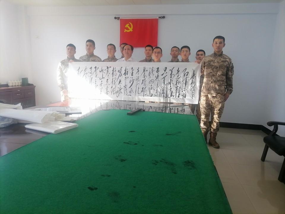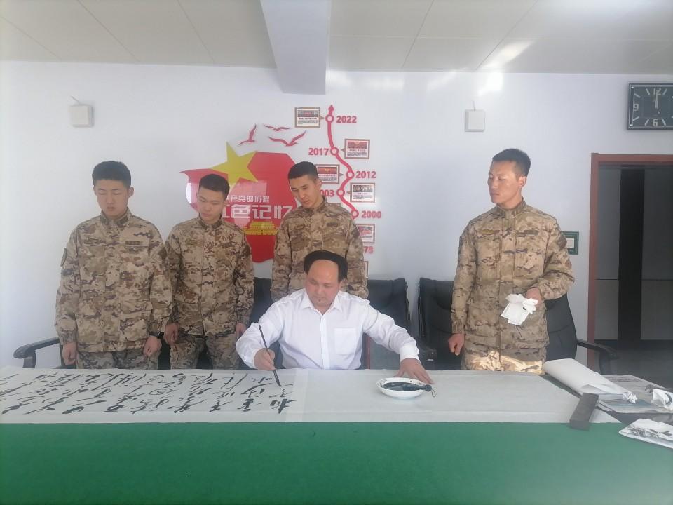 在此次活動中,特型扮演者趙士奎老師為承德支隊官兵題寫了充滿激情的詩詞《長征》及“軍魂”等書法作品,展現(xiàn)了其精湛的書法技藝和對傳統(tǒng)文化的深刻理解,贏得了官兵們的敬意。